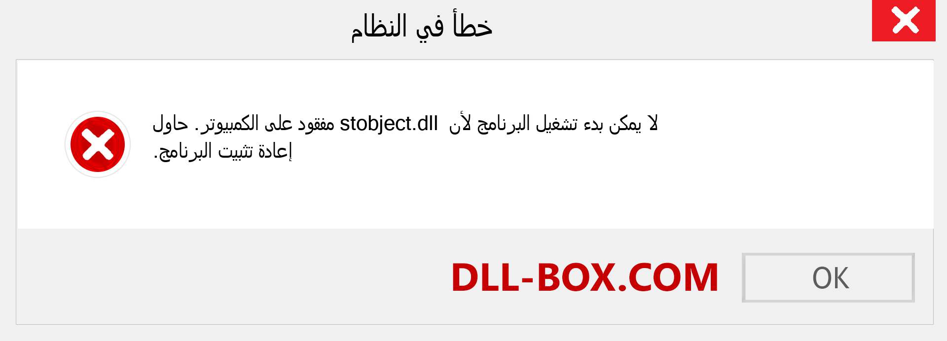 1. لا يمكن بدء تشغيل البرنامج لأن stobject.dll مفقود من جهاز الكمبيوتر الخاص بك. الرجاء إعادة تحميل البرنامج \ التطبيق لعلاج هذه المشكلة.